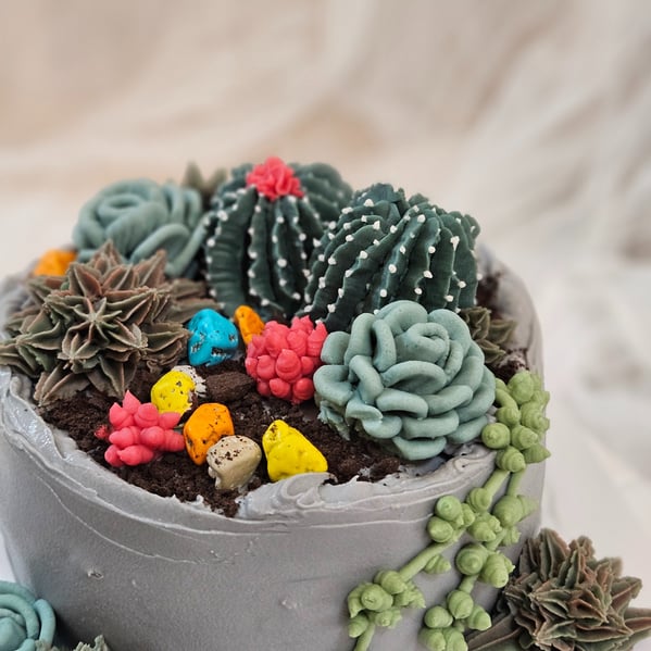 喜歡多肉植物的同學絕對要選這堂!我們會將蛋糕裝飾成多肉盆栽的樣式,細膩的裝飾技巧在這堂課中有很多小撇步要教給你!擬真的多肉盆栽讓很多學姐在下課回家的路上被路人搭訕詢問唷!